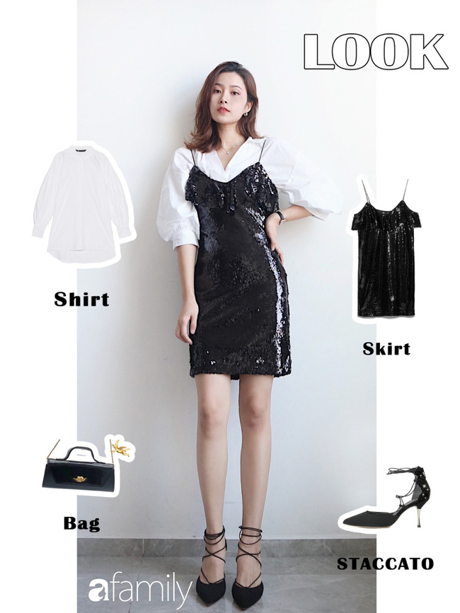 Chiếc váy hai dây sequin đừng vội cất đi, bạn hoàn toàn có thể sử dụng nó để giúp mình tỏa sáng tại buổi tiệc Tất niên của công ty.