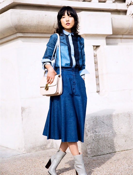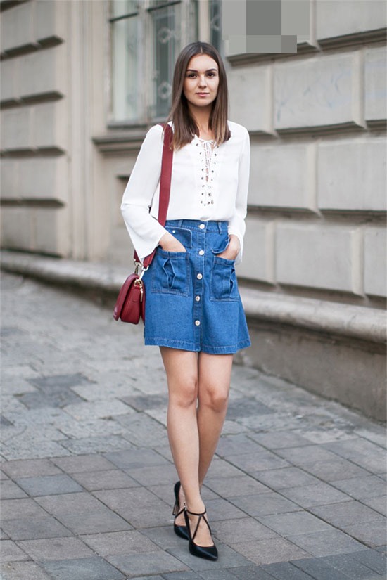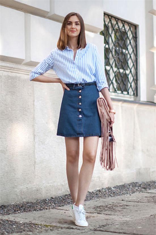Những bạn gái dáng người thấp bé khi diện chân váy mini denim sẽ rất hữu ích để bạn tạo "chiều cao ảo" đánh lừa con mắt người đối diện.
