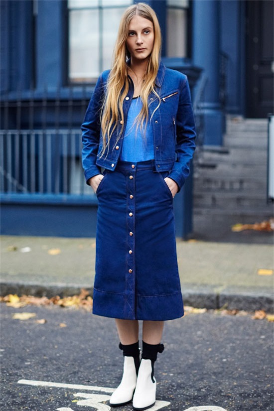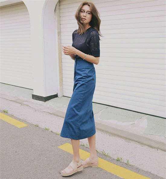 Mang hơi hướng cổ điển nhưng chân váy midi denim chưa bao giờ bị lỗi mốt. Khác với chân váy mini, chân váy midi thường dài chấm bắp chân hoặc có thể gần chấm mắt cá chân. Váy midi có nhiều kiểu dáng như bút chì, chữ A, dáng xòe... Tuy nhiên, tất cả đều có "phẩm chất" là giúp người mặc thêm duyên dáng, dịu dàng và yêu kiều.