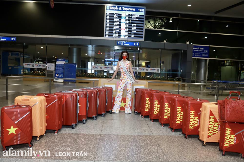 Và không thể không nói đến khoản chuẩn bị trang phục kỹ lưỡng của Khánh Vân. Ngay từ khi ra sân bay cô đã gây choáng khi mang theo đến 15 vali hành lý. Tất cả vali đều lấy tông đỏ - cam làm chủ đạo như đại diện cho hình ảnh Quốc kỳ Việt Nam. Dù không hé lộ chính xác về số quần áo, phụ kiện mang theo nhưng không khó để nhận ra, Khánh Vân đã chuẩn bị vô cùng kỹ càng, quyết tâm cao độ tại cuộc thi lần này