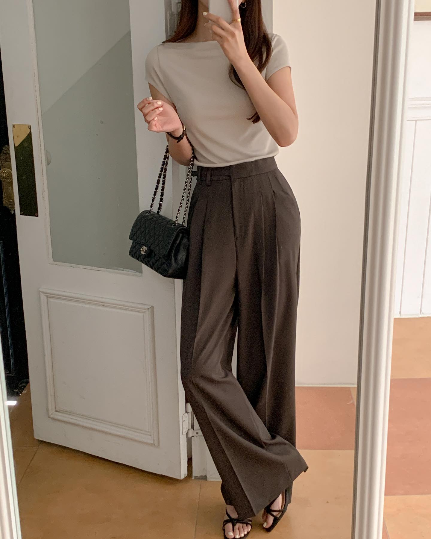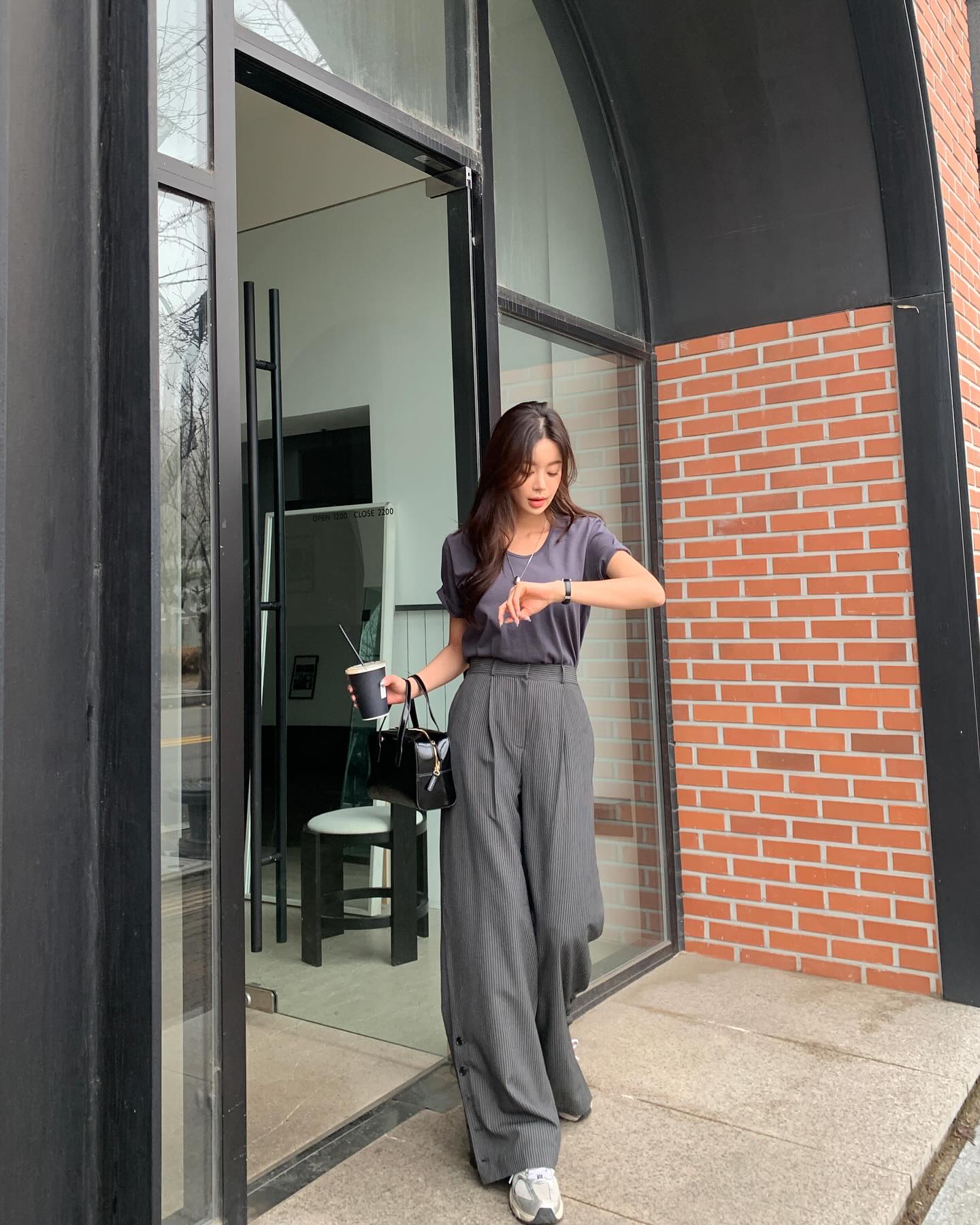 Quần âu là món thời trang đúng chất công sở. Bởi vậy, khi kết hợp mẫu quần này với áo thun, chị em dễ dàng có được vẻ ngoài chỉn chu và thanh lịch. Để không phải suy nghĩ nhiều trong khoản phối màu sắc, quý cô trên 40 tuổi hãy ưu tiên áo thun và quần âu mang tông màu trung tính làm chủ đạo. Cách kết hợp này còn đảm bảo nét tinh tế cho các set trang phục công sở.