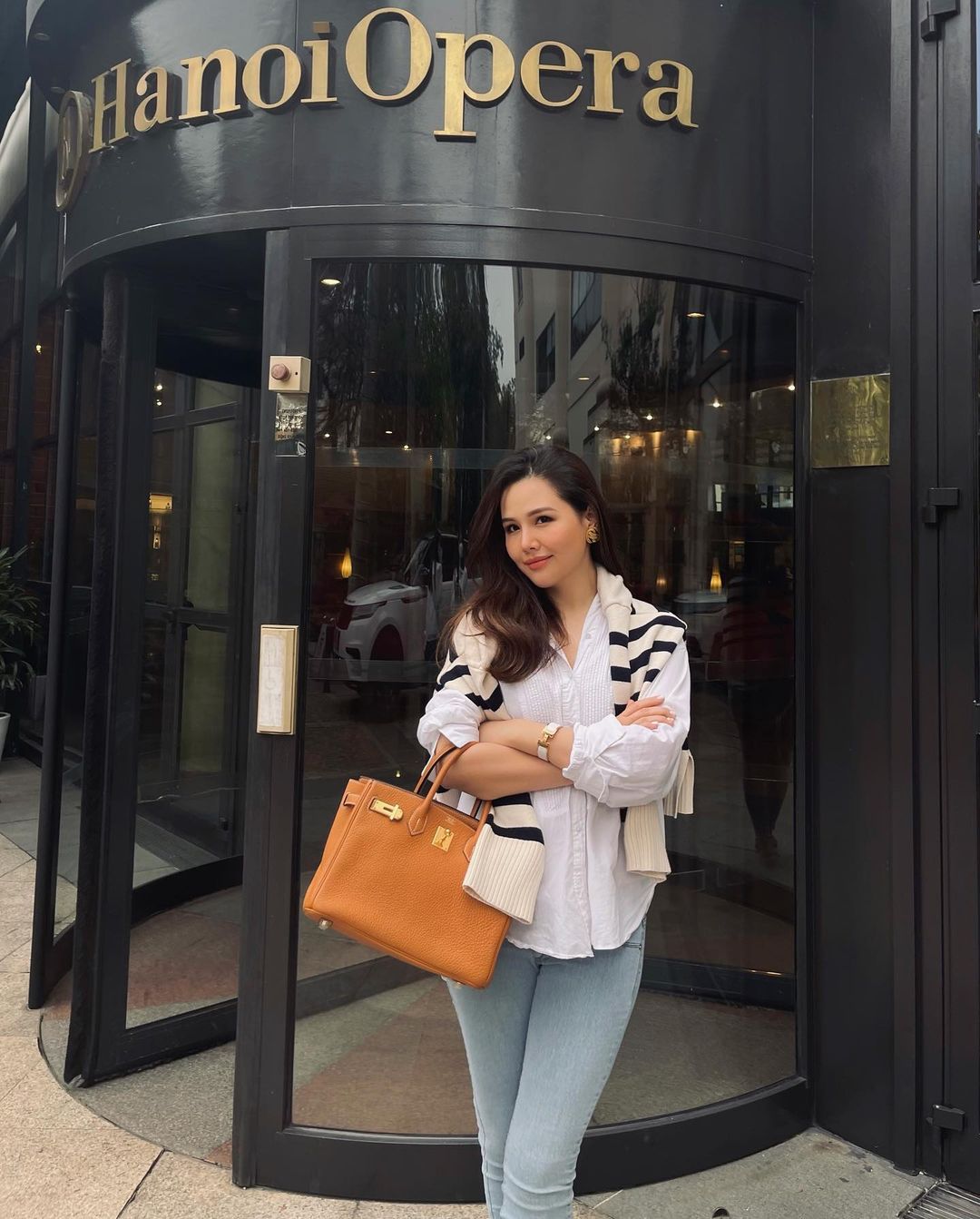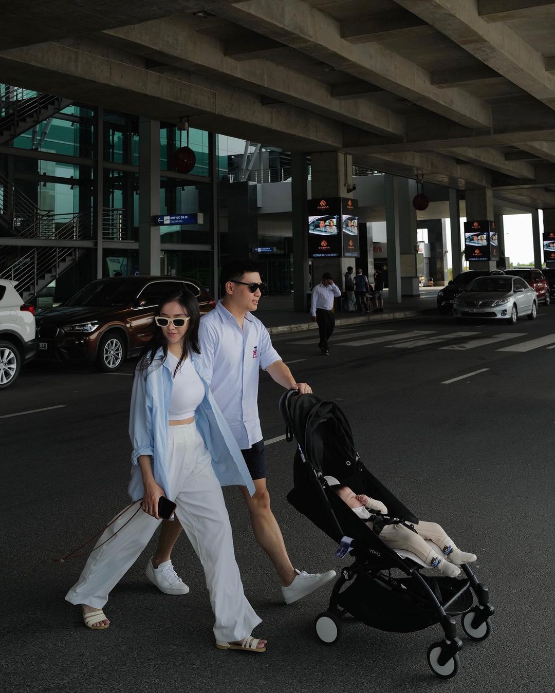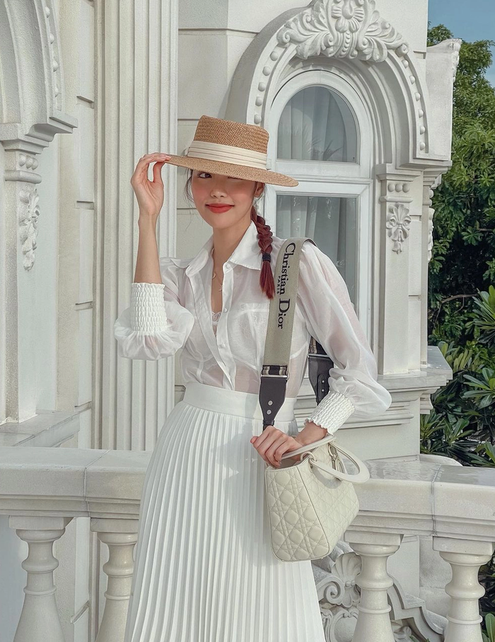 Tuy nhiên, điểm khác biệt ở chỗ, các nàng dâu nhà ta rất tinh tế trong việc lựa chọn màu sắc. Họ thường phối các tông màu sáng như trắng - xanh với nhau hoặc tôn sùng công thức đen - trắng kinh điển. Ngoài ra, bạn cũng nên ưu tiên các mẫu áo có hoạ tiết nhỏ, đồng màu như kẻ sọc hoặc hoa nhí giống Hồ Ngọc Hà và Đàm Thu Trang để tạo điểm nhấn cho outfit của mình.
