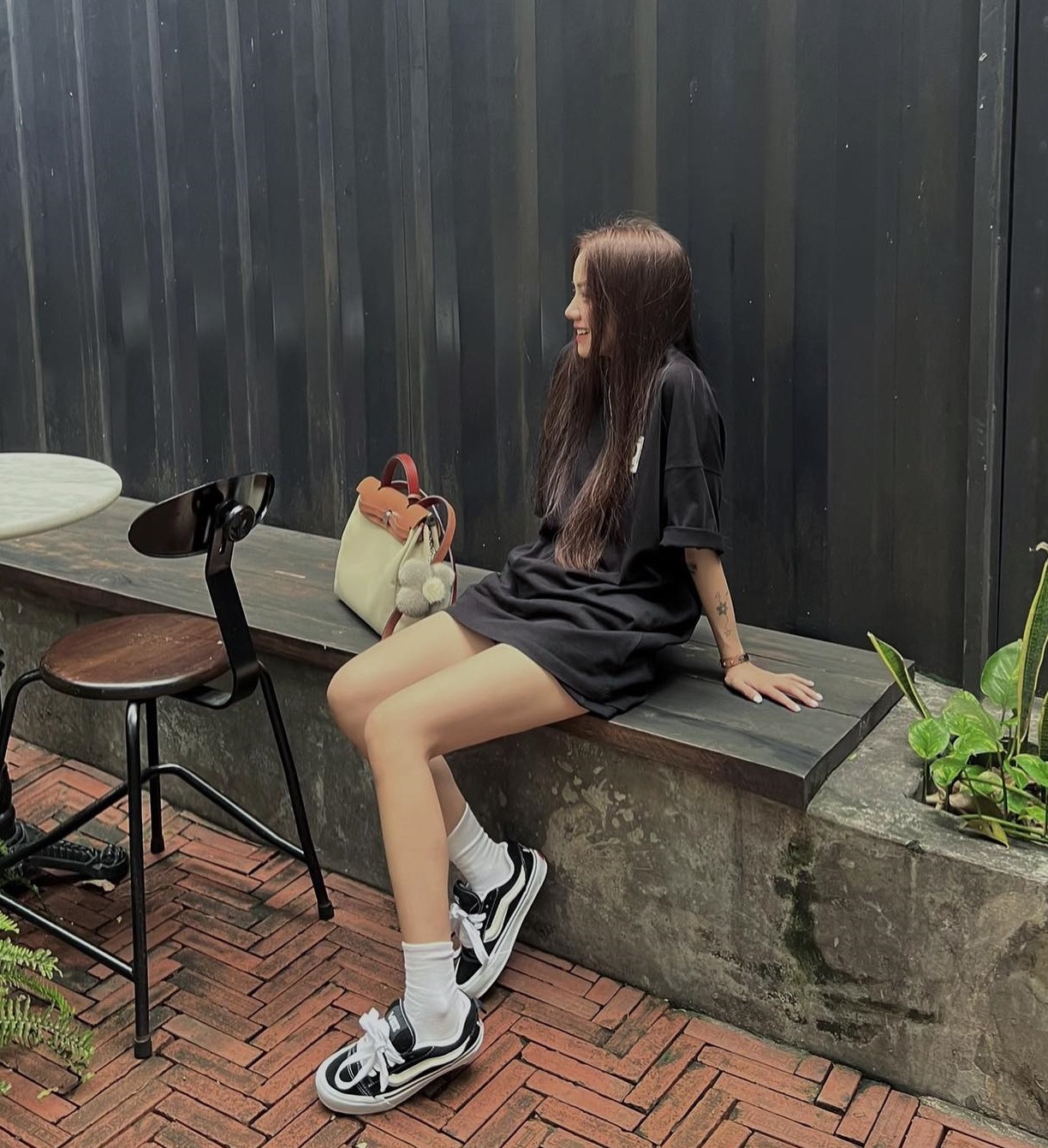 Thay vì chọn áo thun mang tông màu ngọt ngào, tươi tắn, Phương Ly thường ưu tiên những thiết kế mang tông màu đen hoặc trắng, nhấn nhá họa tiết. Gam màu đen/trắng sẽ giúp vẻ ngoài của người mặc trở nên trang nhã hơn, và không khó để mix đồ. Dẫu vậy, áo thun màu đen/trắng vẫn mang tới cho người diện nét năng động, trẻ trung. Phương Ly thường kết hợp áo thun với quần jeans ống đứng, quần đen ống rộng hoặc chân váy ngắn để hoàn thiện outfit sành điệu, nổi bật.