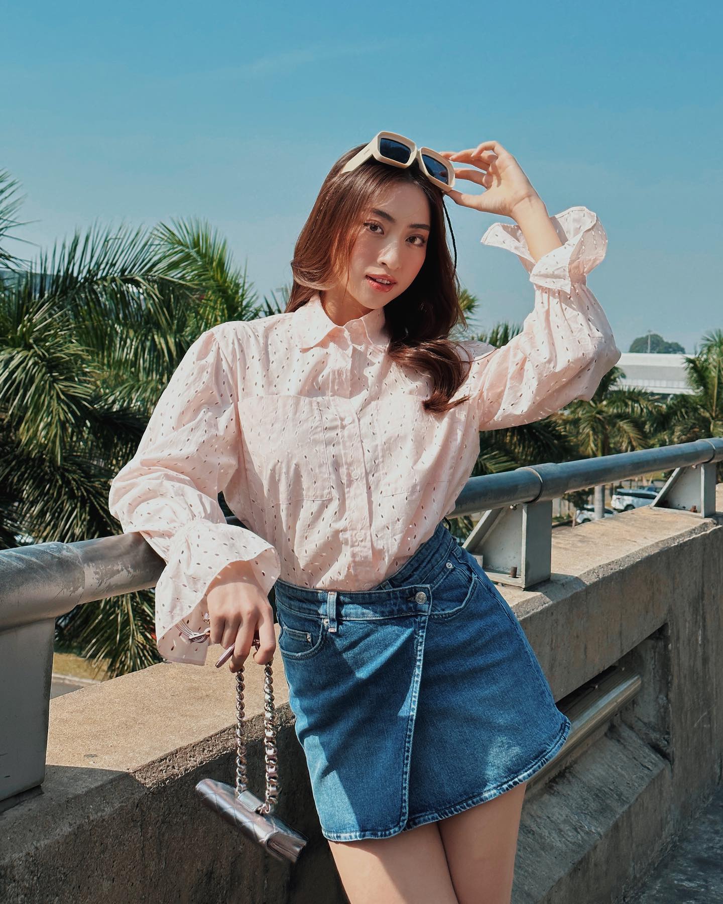 Chị em nên kết hợp áo sơ mi màu pastel với quần dài, chân váy mang tông màu trung tính để cân bằng tổng thể trang phục. Những khi muốn nhân đôi hiệu quả "hack" tuổi, các nàng hãy kết hợp áo sơ mi màu pastel với chân váy denim hoặc quần jeans bụi bặm, trẻ trung.