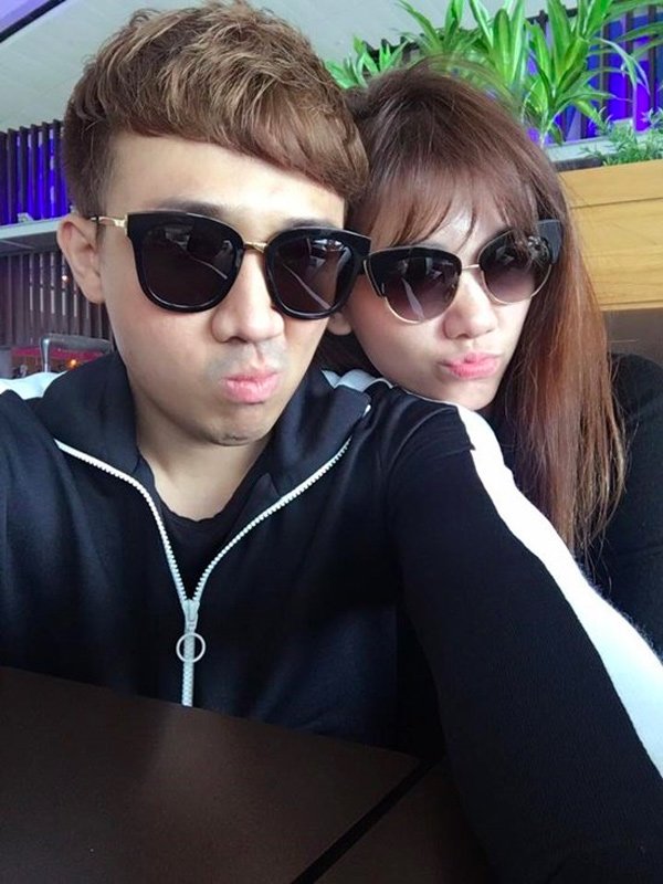 Vợ chồng người bạn thân của danh hài là Trấn Thành cũng nhí nhố khi tạo dáng với kính đôi.