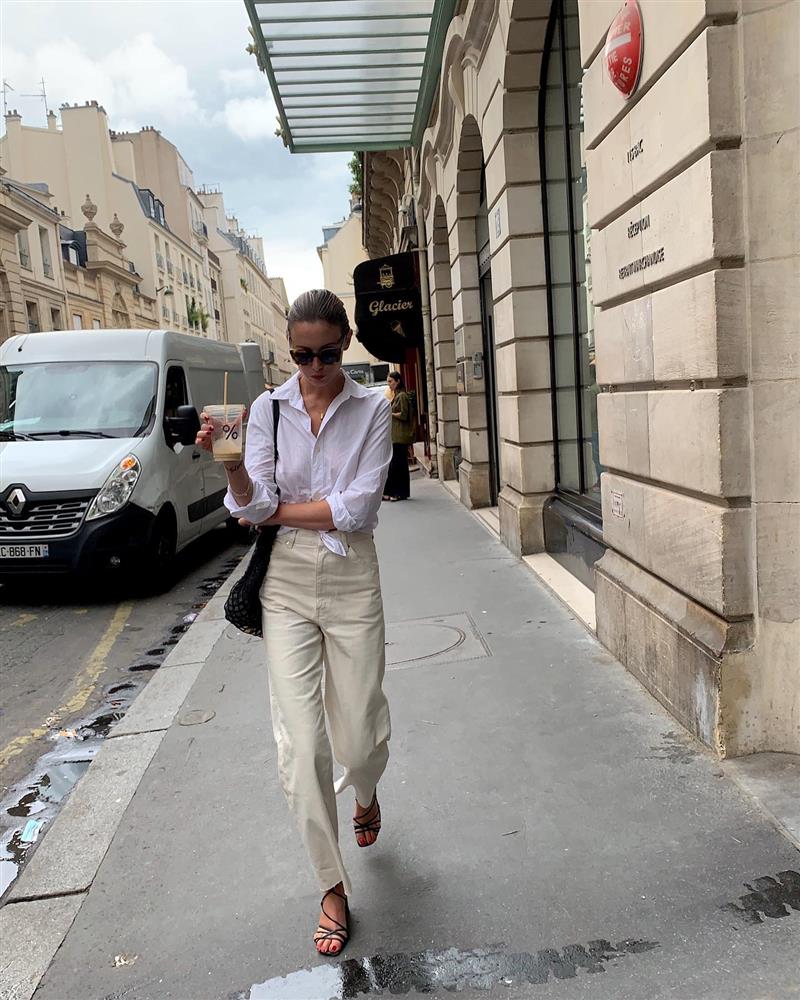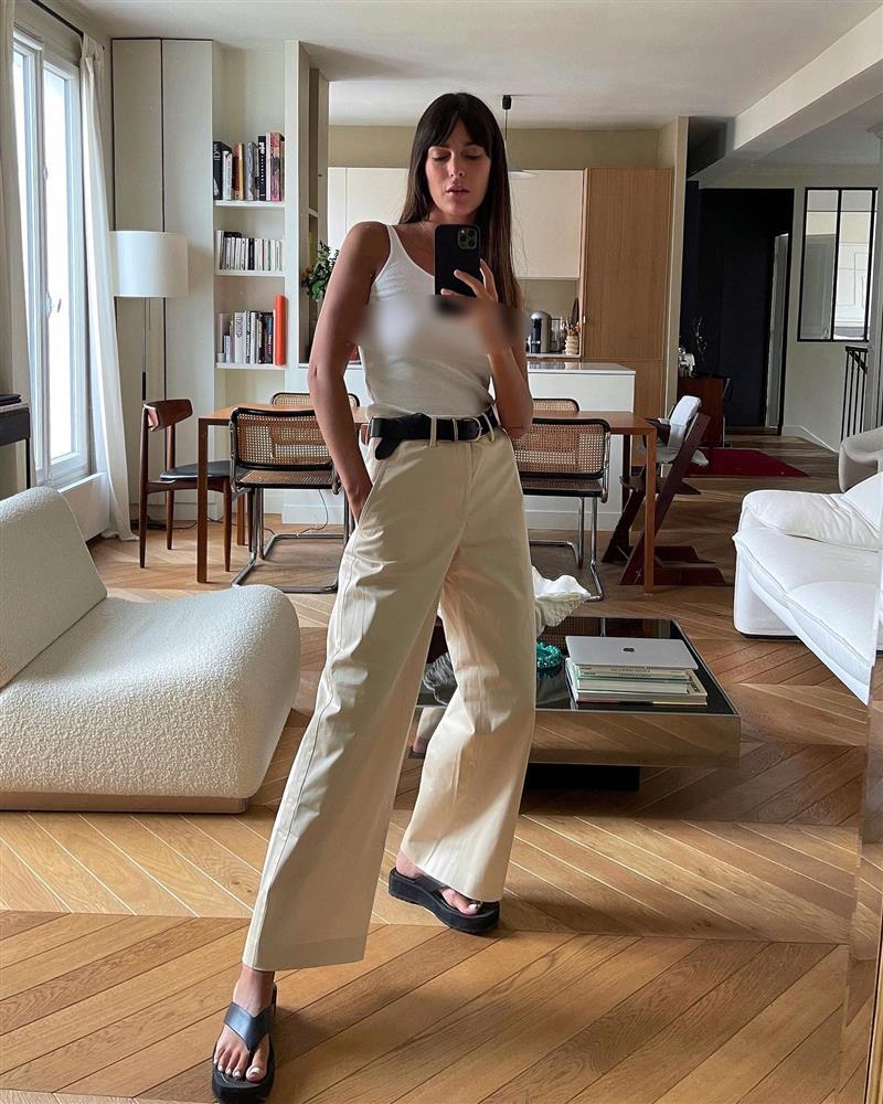 Quần màu be được phụ nữ Pháp rất ưa chuộng. Kiểu quần này trang nhã, nhưng cũng đầy phong cách. Quần màu be còn dễ mặc, và tạo cảm giác thoải mái khi diện vào mùa hè. Không khó để mặc đẹp quần màu be. Item này gần như có thể kết hợp được với mọi kiểu áo. Dẫu vậy, phụ nữ Pháp vẫn có một công thức "ruột" khi diện quần màu be, đó là kết hợp với áo trắng. Công thức này chuẩn thanh lịch, nhẹ nhàng và tinh tế, chị em áp dụng đi làm hay đi chơi đều ổn.