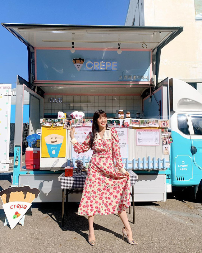 Bỏ qua đôi dép lê lạc quẻ thì chiếc váy hồng tím, đậm chất bánh bèo của Suzy cũng rất đáng để chị em thử nghiệm trong dịp Valentine, diện lên yểu điệu và hút mắt phải biết.