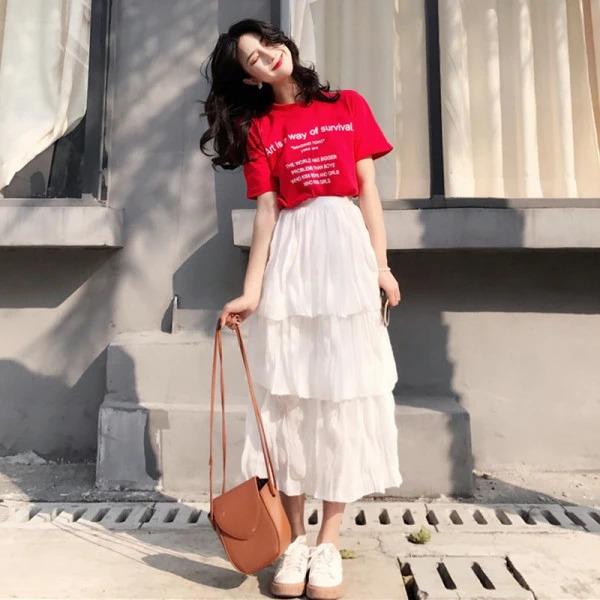 Dưới đây là những công thức mix đồ với chân váy xếp tầng dài vừa tôn dáng lại thoải mái lại dễ che đi khuyết điểm.