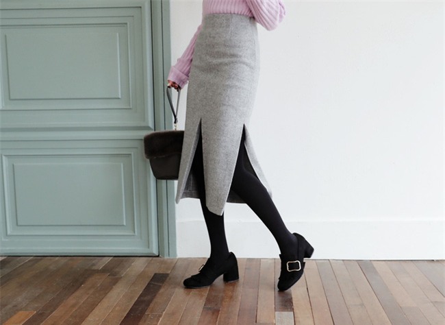Trời lạnh không có nghĩa là không được mặc váy. Các quý cô điệu đà vẫn có thể giữ nguyên phong cách yêu thích của mình với những mẫu váy midi bút chì thanh lịch, có chất liệu dày dặn như dạ, denim hoặc da. Dáng váy ôm lấy chân cùng chất liệu dày đặc trưng của mùa đông sẽ khiến bạn không còn cảm thấy lạnh giá, nhất là khi bạn kết hợp thêm với quần tất dày màu đen và những đôi boots ấm áp.