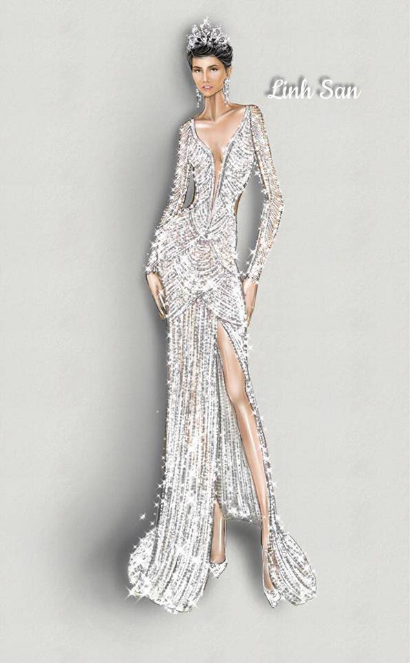 Theo đó, NTK Linh San đồng thời là "mẹ nuôi" của H’Hen Niê, chính là người đã làm nên chiếc váy dạ hội tuyệt đẹp này. Không những thực hiện những đường cắt, dựng phom khéo léo, việc đính kết hơn 3000 viên đá quý vô cùng kỳ công đã tạo nên một tuyệt phẩm vô giá cho giúp H’Hen Niê làm nên lịch sử cho nhan sắc Việt trên đấu trường quốc tế.