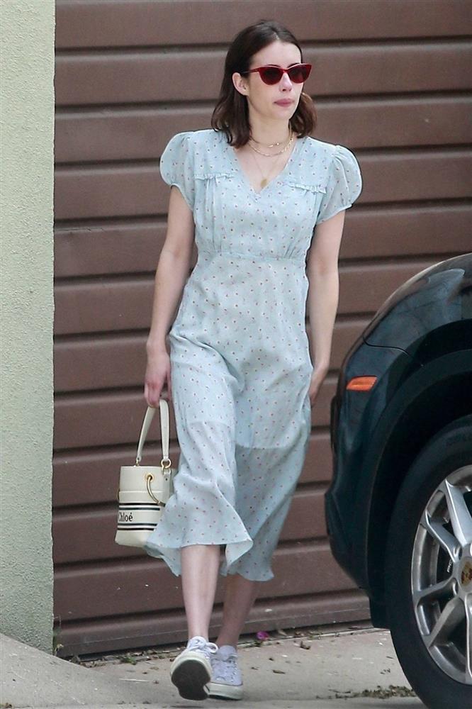 Emma Roberts chính xác là "thánh diện váy". Cô luôn chọn váy họa tiết mỗi khi xuống phố, và đặc biệt yêu thích đầm hoa. Vì ưu tiên những thiết kế phối tươi sáng mà nhã nhặn, họa tiết mini, Emma Roberts luôn trông rất trẻ trung, tao nhã khi diện váy. Thêm một điểm đáng chú ý nữa, các mẫu váy của Emma Roberts thường có chi tiết nhấn eo để giúp "ăn gian" chiều cao.