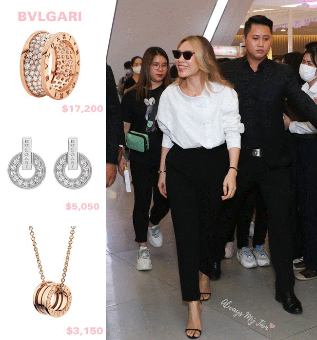 Những mẫu trang sức Bvlgari mà Mỹ Tâm đã đeo đều là những item kinh điển của hãng. Lisa - đại sứ của Bvlgari cũng từng nhiều lần diện những item tương tự, điển hình là mẫu dây chuyền gần 75 triệu VNĐ.