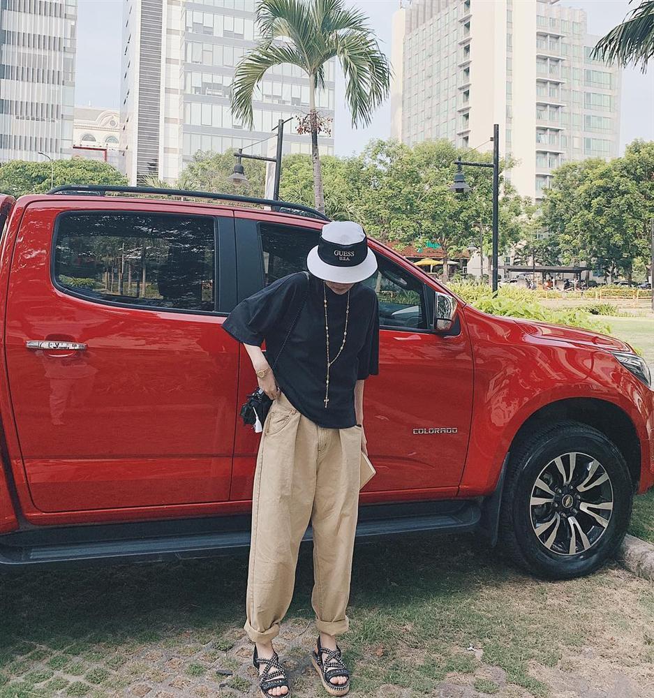 Trong khi đó, cô chị Thiều Bảo Trang lại chọn style hơi hướng hiphop với áo phông basic phối quần thô và mũ bucket bụi phủi.