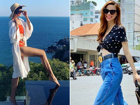 Đường cong nóng bỏng và phong cách khỏe khoắn của Tú Hảo được dịp phô diễn tối đa chỉ nhờ chiếc đầm denim mở cúc.