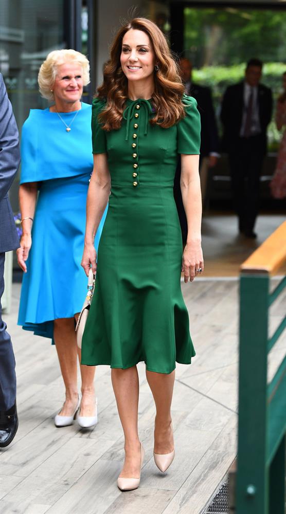 Bộ váy xanh trơn màu dáng midi cổ điển này nhìn qua thì không hề có bất kỳ vấn đề nào. Công nương Kate thanh lịch nhẹ nhàng trong bộ đầm xanh, kết hợp cao gót màu trắng trang nhã, mái tóc xõa bồng bềnh càng tăng thêm vẻ ngoài xinh đẹp thanh tú của cô.