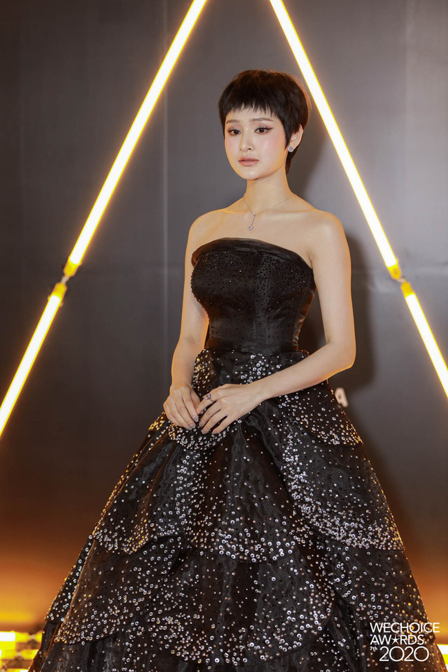 Trường hợp thứ 2 đó là Hiền Hồ, nữ ca sĩ xuất hiện xinh đẹp và thu hút trong mẫu thiết kế váy quây đen đính đá đầy ấn tượng, cách trang điểm kẻ đuôi mắt dài cùng kiểu tóc tém cá tính đã giúp cho Hiền Hồ ghi điểm trong lần xuất hiện này.
