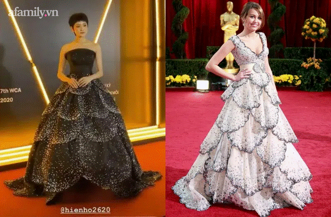 Tuy nhiên, nhanh chóng ngay sau đó netizen đã phát hiện ra phần chân váy của Hiền Hồ được "mượn ý tưởng" từ chiếc váy của thương hiệu Zuhair Murad mà Miley Cyrus đã mặc từ năm 2009, trong lễ trao giải Oscar.