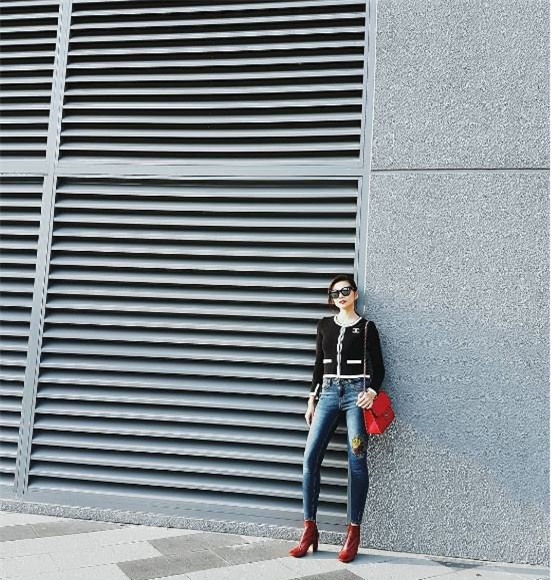 Mặc dù diện đồ bình dân, nhưng cô luôn thể hiện đẳng cấp khi kết hợp phụ kiện hàng hiệu rất thu hút.