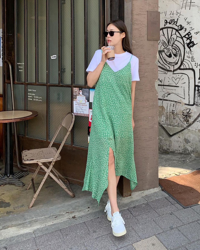 Vào mùa hè thì ngoài những chiếc áo phông nhẹ mát, sơ mi thanh lịch thì váy hai dây cũng là "ngôi sao". Mẫu váy này diện lên luôn mát mẻ, toát lên nét phóng khoáng đúng chất hè. Có điều, váy hai dây không hẳn là item cứ nhắm mắt mặc là đẹp, chị em cũng cần cẩn trọng, khéo léo khi lên đồ. Bên cạnh đó, việc bồi dưỡng thêm những ý tưởng diện váy hai dây đẹp cũng là cách rất hay để đa dạng hóa phong cách, thậm chí là nâng tầm style vượt bậc. Và để chị em hình dung rõ hơn thế nào là cách diện váy hai dây chuẩn xinh, sành điệu nhất, hãy tham khảo 12 công thức sau đây của gái Hàn nhé!