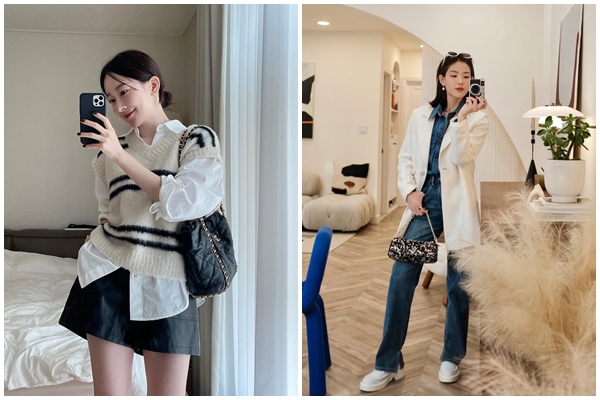 Áo sơ mi và cardigan là lựa chọn hết sức nhẹ nhàng cho những ngày xuân không quá lạnh. Combo này toát lên nét nữ tính, xen lẫn vẻ thanh lịch. Để tăng thêm hiệu quả hack tuổi cho outfit, bạn nên chọn một chiếc quần jeans trắng. Vốn dĩ, áo cardigan dáng lửng đã giúp hack chiều cao, nhưng sơ vin vẫn là thao tác không thể thiếu để nâng tầm set trang phục.