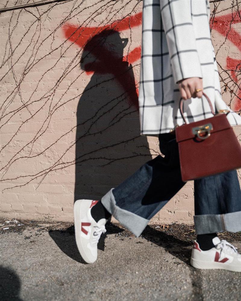 Quần jeans và giày sneakers là combo "vô đối" về khả năng hack tuổi. Dù bạn đang diện lên mình chiếc áo len tối sầm, hay áo blazer nghiêm túc, đứng đắn thì vẻ ngoài vẫn toát lên nét trẻ trung, năng động nếu kết hợp với quần jeans và giày thể thao. Trong muôn kiểu sneakers, những đôi giày trắng tinh tươm, phom dáng gọn gàng sẽ giúp set đồ của bạn thêm thanh lịch, sang chảnh thay vì chỉ dừng lại ở vẻ "xì tin xì khói".
