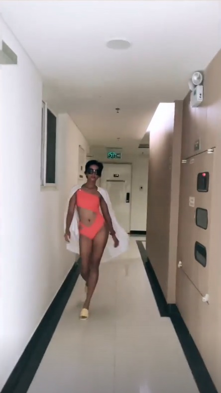 Vừa "thả thính" người hâm mộ với clip khoe dáng chuẩn, cô Hen tiếp tục "đốt mắt" khán giả khi diện áo tắm cut-out táo bạo rồi catwalk tự tin như đang biểu diễn trên sàn runway. Nhưng lần này, người đẹp Ê-Đê trưng dụng món "đồ hiệu" yêu thích - dép tổ ong.