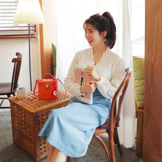 Chân váy midi kết hợp cùng áo ren cách điệu, combo rất hợp để các nàng diện trong những ngày xuân ấm áp của hiện tại.