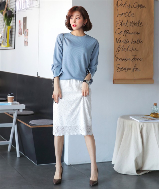 Áo phông dài tay và chân váy ren, cặp đôi tưởng như chẳng hề liên quan lại có sự hòa quyện ngọt ngào và thanh lịch thế này.