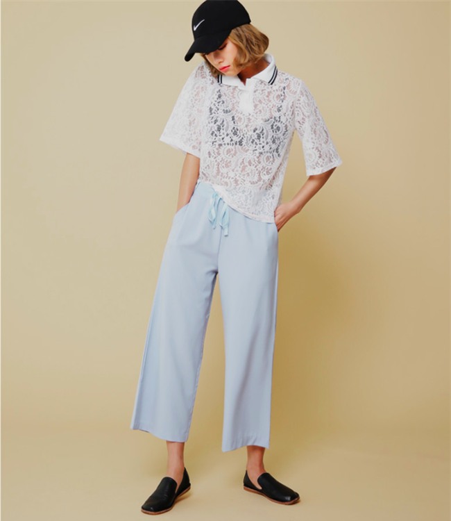Bản thân chiếc áo cũng có khá nhiều những cách điệu ngọt ngào nên các nàng cũng chỉ cần một thiết kế quần âu đơn giản là đủ đẹp rồi. Thay vì quần âu đen, các nàng có thể chọn quần xanh để có sự chuyển màu thú vị cho set đồ...