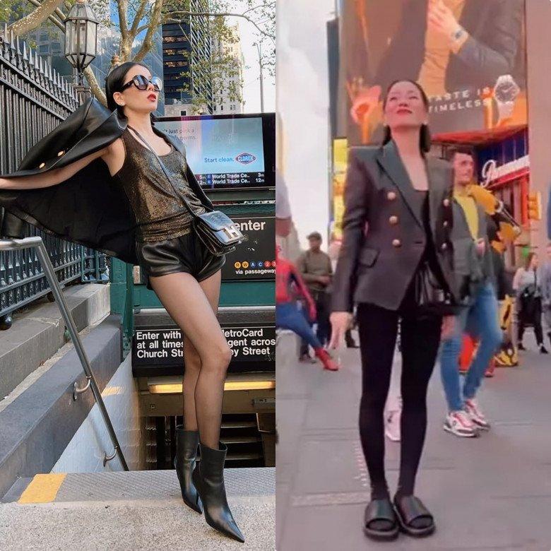 Trước đó, Lệ Quyên gây thú vị với khoảnh khắc mặc vest chỉn chu nhưng đi một thiết kế dép bệt bằng da đen tại xứ sở Cờ hoa.