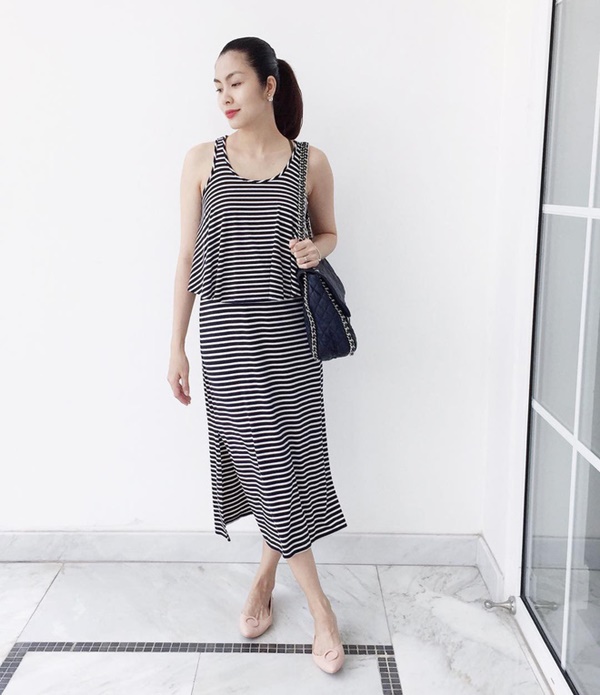 Không đơn thuần là đầm bầu color block hay những kiểu dáng sến sẩm lỗi mốt từ trước, người đẹp linh hoạt chọn trang phục trẻ trung hoặc tinh giản tuỳ thuộc hoàn cảnh