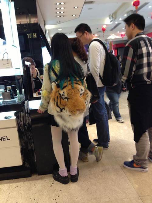 Hẳn cô gái này đang muốn dọa khiến người đối diện thót tim khi sở hữu cả balo đúng điệu "hổ báo, cáo chồn".