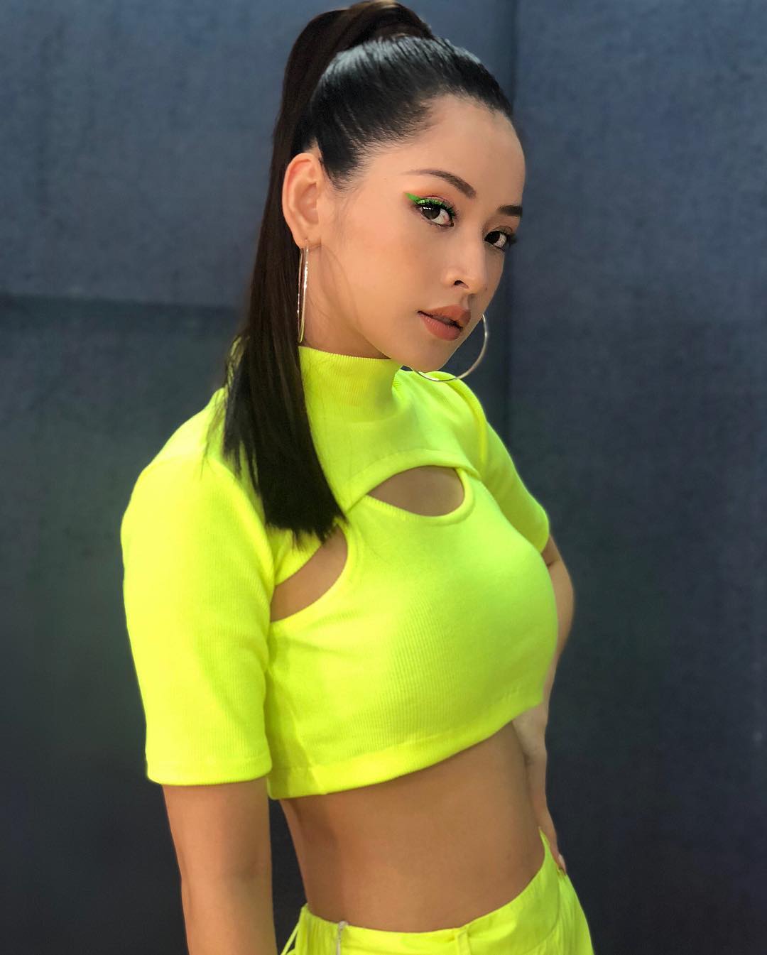 Chi Pu khoe vòng eo "con kiến" với trang phục màu xanh neon cut-out.