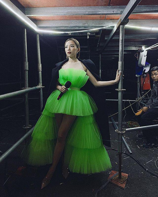 Tóc Tiên diện màu xanh nõn chuối đi biểu diễn, đi dạo phố...
