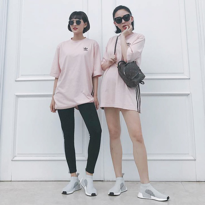 Đứng tạo dáng trước ống kính cùng huấn luyện viên của mình trong cuộc thi The Voice 2017 - Tóc Tiên, Hiền Hồ lép vế hơn hẳn khi chọn mặc áo thun oversized kèm quần legging làm che mất đi đôi chân thon dài.