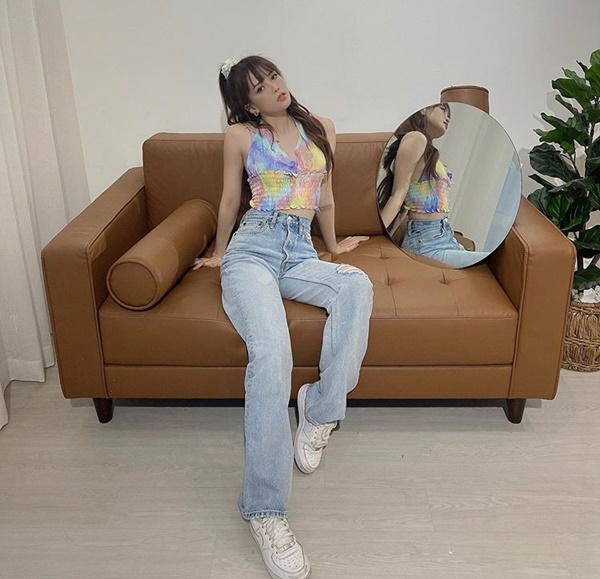 Những chiếc quần màu loang được Quỳnh Anh Shyn ưa chuộng mix theo nhiều phong cách khác nhau. Nếu chọn kiểu quần ống loe lưng cao bạn cũng có thể phối với áo croptp để khoe khéo cơ bụng như người đẹp Hà Thành.