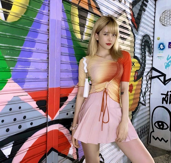 Áo màu loang tông pastel với chie tiết bèo nhún giúp bạn gái tin đồn Sơn Tùng M-TP trẻ trung và đáng yêu hơn bao giờ hết. Dù đã U30 nhưng cách ''lên đồ'' của cô nàng vẫn nhí nhảnh như các nữ sinh mới lớn.