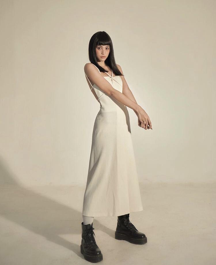 Theo dõi trang cá nhân của Tăng Thanh Hà thì thấy cô luôn thích diện trang phục đơn sắc. Kiểu váy 2 dây bèo nhún chiết eo phối cùng túi xách và giày búp bê cùng tông mang đến vẻ đẹp trẻ trung, duyên dáng cho nàng ''ngọc nữ''.