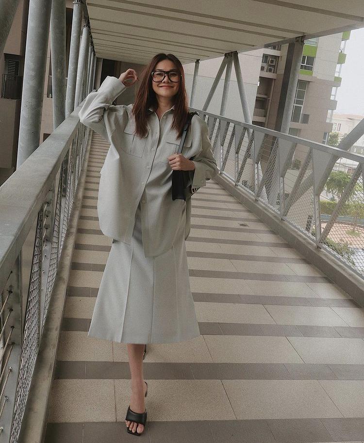 Thanh Hằng là mỹ nhân chuộng các thiết kế đơn sắc, cô chủ yếu chọn những gam màu trung tính như trắng, đen, xám...mix&match hài hòa tạo nên tổng thể ''chất miễn bàn''.