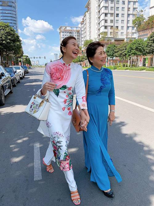 Thanh Hằng và mẹ cùng diện áo dài ngày đầu năm gây sốt mạng xã hội vì quá xinh đẹp.