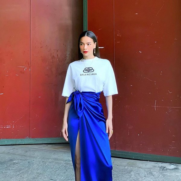 Màu xanh cổ điển chính là màu sắc lên ngôi của năm nay. Chính vì thế đừng quên bám theo bí quyết này của Hà Hồ nhé.