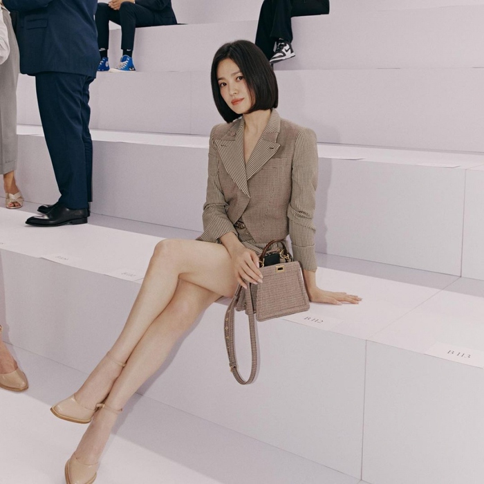 Thanh lịch và trang nhã hơn nữa là set quần short đồng bộ mà Song Hye Kyo đang diện. Để không làm giảm đi nét tinh tế của tổng thể outfit, Song Hye Kyo đã đi một đôi giày màu be. Lựa chọn này còn có tác dụng kéo chân, "hack" dáng tối ưu.