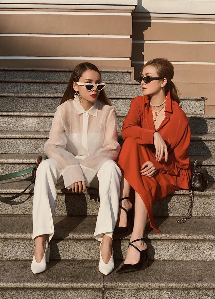 Thu Ngọc và Yến Trang khá thân thiết với nhau. Cả hai luôn chọn những bộ cánh tương xứng khi gặp nhau, khi thì diện đồ đôi sang chảnh, khi trẻ trung với váy áo nổi bật sắc màu.