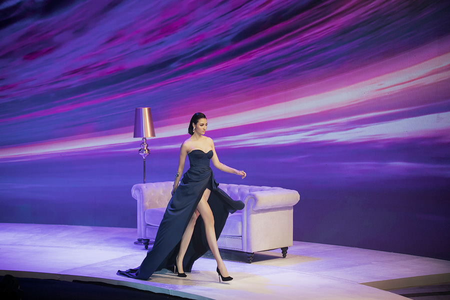 Điểm nhấn của màn trình diễn nằm ở khoảnh khắc chân dài thay đổi trang phục trên sân khấu.