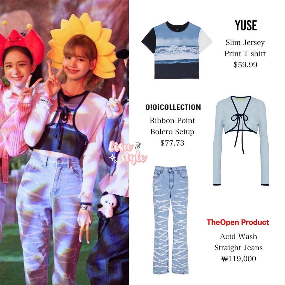 Trong hình ảnh mới đây, Lisa cũng vừa diện mẫu quần mà Jennie từng diện. Tuy nhiên em út BLACKPINK lại mang đến hình ảnh khác hẳn. Không lên đồ "nóng hừng hực" như Jennie, Lisa diện mẫu quần jeans này với áo crop top khoe eo thon.