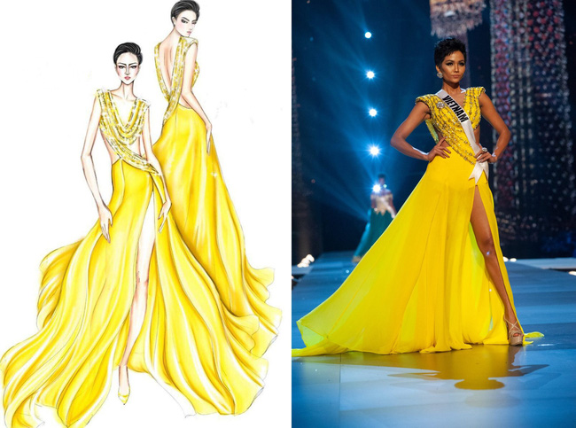 Từ bản thiết kế cho đến hình ảnh của H'Hen Niê trên sân khấu HH Hoàn Vũ Thế Giới đều không khác gì nhau. Bảo sao màn hất váy của cô đã trở thành huyền thoại và góp phần không nhỏ giúp cô nàng ghi tên vào Top 5 cuộc thi sắc đẹp danh giá này