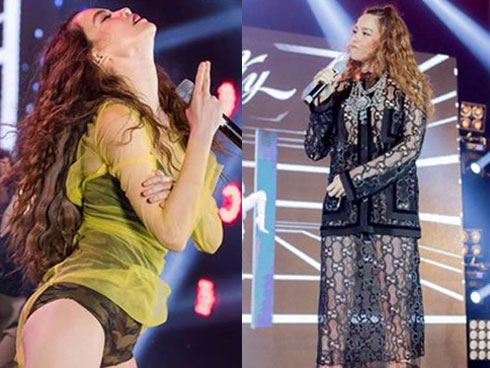 Diễn viên Khả Ngân duyên dáng với trang phục hao hao giống Chi Pu cũng là chiếc áo đen tay dài phối với váy xẻ tà màu camel của Burberry