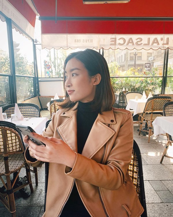 Mix áo thun cao cổ với áo khoác da, vẻ ngoài của bạn sẽ thời thượng và chất thôi rồi! Giống như Hoa hậu Đỗ Mỹ Linh vậy.