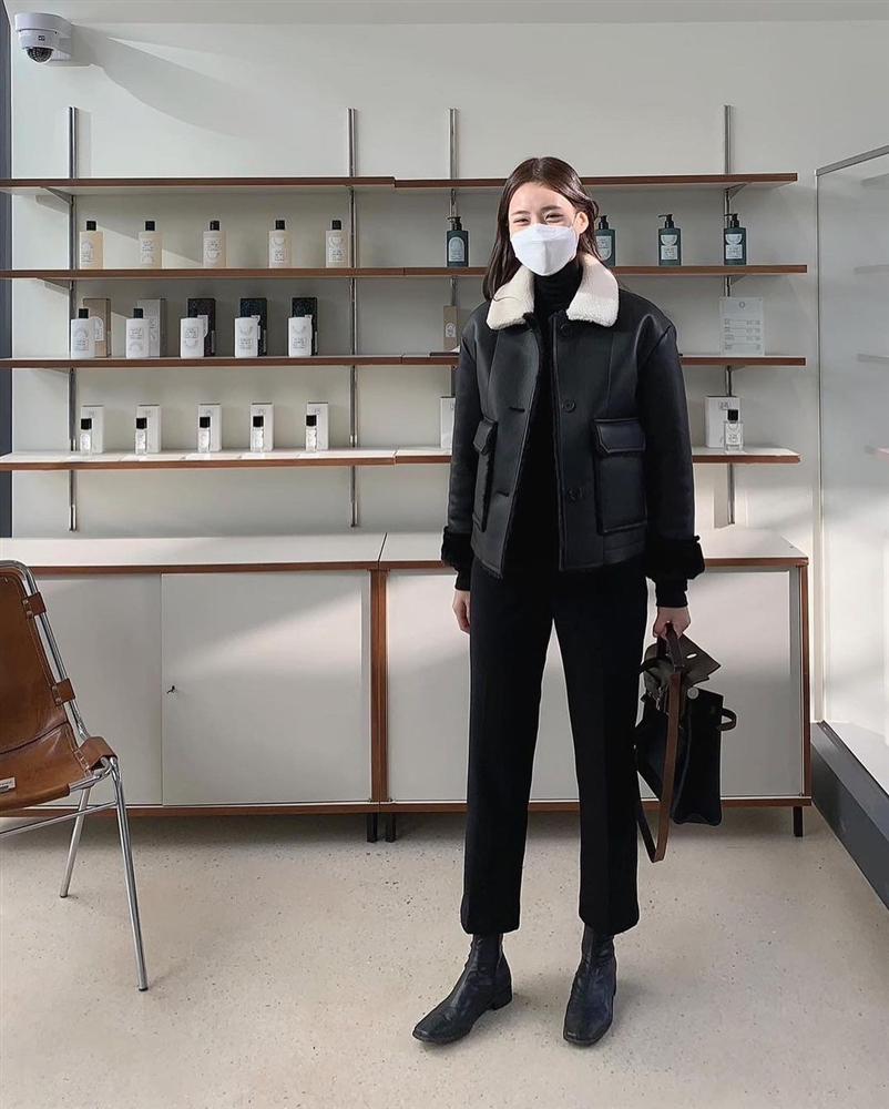 Nếu diện một cây đen toàn tập thì vẻ ngoài sẽ hơi "hắc ám". Tuy nhiên, nếu bạn chọn một chiếc áo da cổ lông, set đồ sẽ có điểm nhấn và trông cũng rất trẻ trung, chất ngầu. Đó còn chưa kể, áo da đang là mốt năm nay nữa.