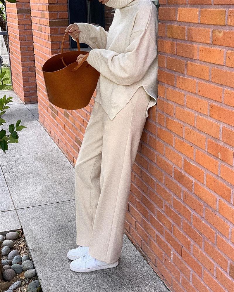 Chỉ đơn giản là mix áo len dáng oversized quần ống rộng tuyền màu trắng kem, sau đó kết lại bằng đôi giày sneaker trắng tinh tươm làm điểm nhấn, vẻ ngoài của bạn đã sành điệu, chuẩn mốt, không chê được điểm nào.